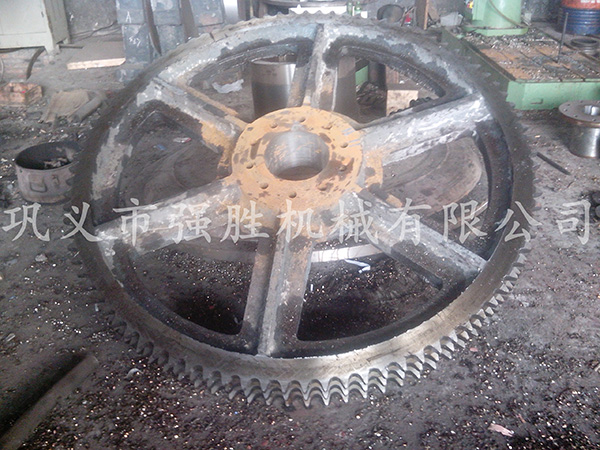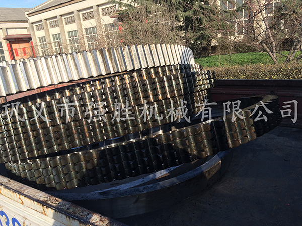 图为本企业供应的直径2米的整体打造45#钢三排大型链轮。